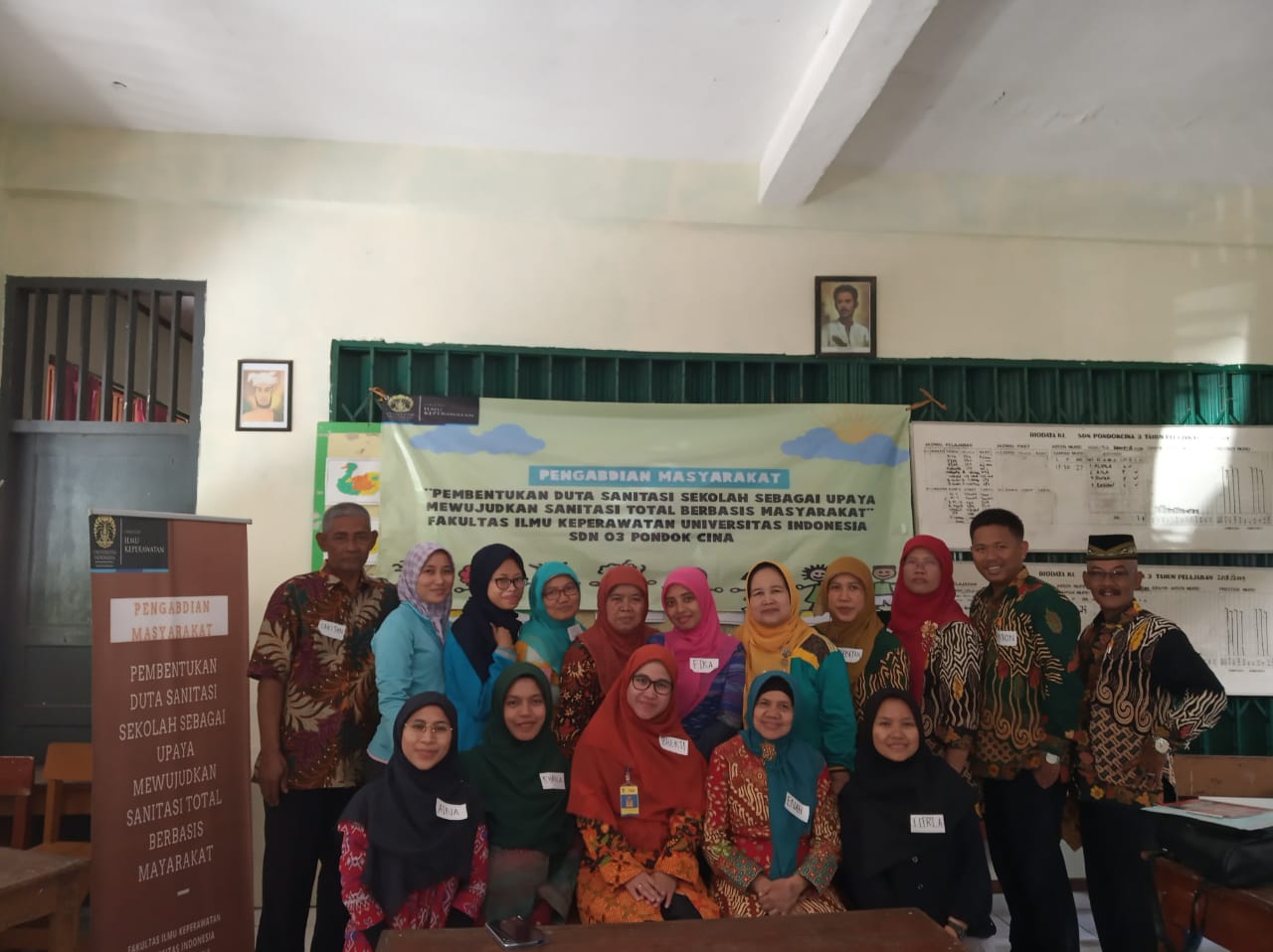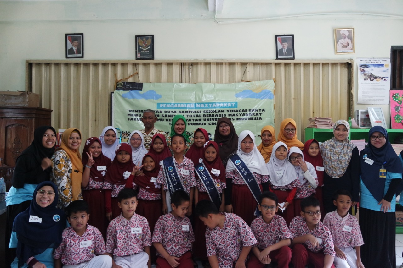 The Faculty of Nursing, University of Indonesia, also plays a role in one of the national health programs, namely the Community-Based Total Facility (STBM). STBM is an integrated action to reduce the incidence of environmental-based infectious diseases, one of which is diarrhea. The program entitled “Formation of School Sanitation Ambassadors as an Effort to Realize Community-Based Total Sanitation” was held at SD Negeri 3 Pondok Cina, Depok. The purpose of this program is to change clean and healthy behavior through hand washing activities among school-age children.